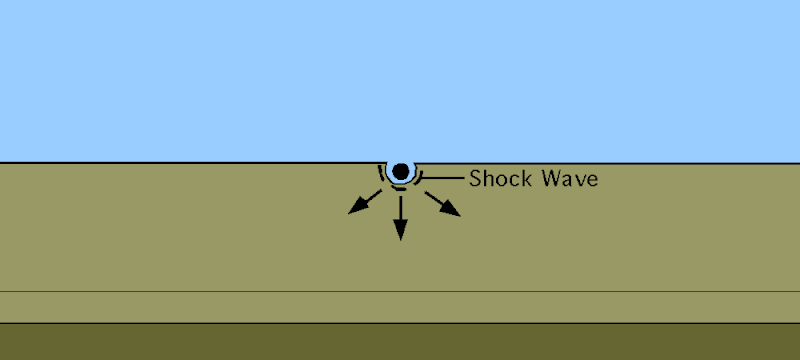 L’animazione mostra la formazione di un cratere meteoritico complesso come quello di Chicxulub. Al momento dell’impatto l’asteroide si vaporizza scatenando potentissime onde d’urto che liquefanno la superficie e lacerano le rocce sottostanti, mentre migliaia di km3 di materiali fusi vengono scaraventati a grandissima velocità fuori dal cratere transiente, che è instabile; analogamente a ciò che accade lanciando un sasso in uno stagno, si verifica un effetto rimbalzo repentino che controbilancia la pressione delle onde d’urto e si solleva un titanico pennacchio centrale di materiale fuso che in pochi minuti collassa assieme al cratere transiente, generando il cratere finale (fonte Wikipedia)