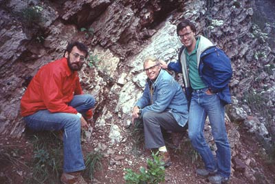 Alvarez-trio in Gubbio- Walter Alvarez with Mark Anders and David Bice, marked as public domain, more details on Wikimedia Commons